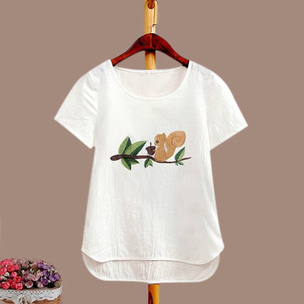 2017夏季女装白色t恤女刺绣短袖纯色t恤女大码打底衫半袖t体恤棉
