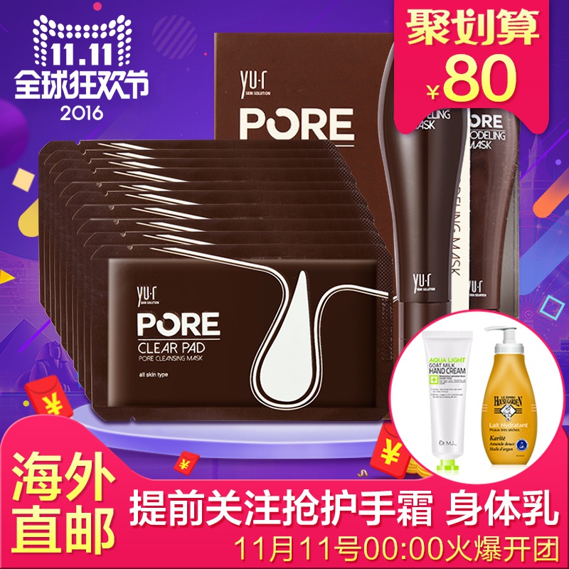 韩国pore鼻膜去黑头面膜撕拉式导出液套装yur祛粉刺yu.r鼻贴女士