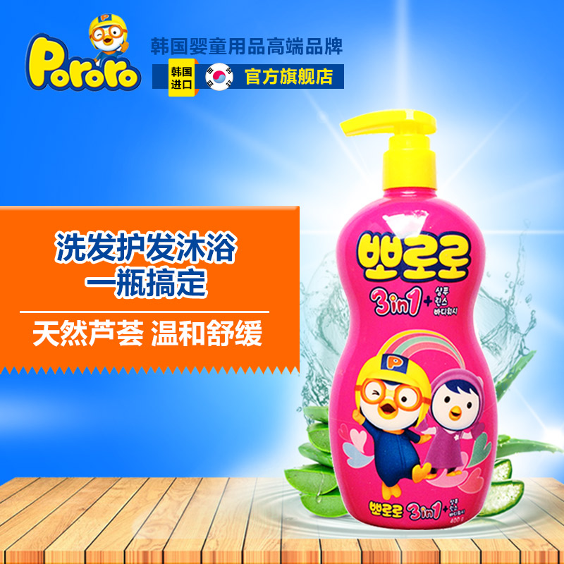 韩国进口pororo小企鹅宝宝沐浴露儿童洗发水婴儿护发沐浴乳三合一