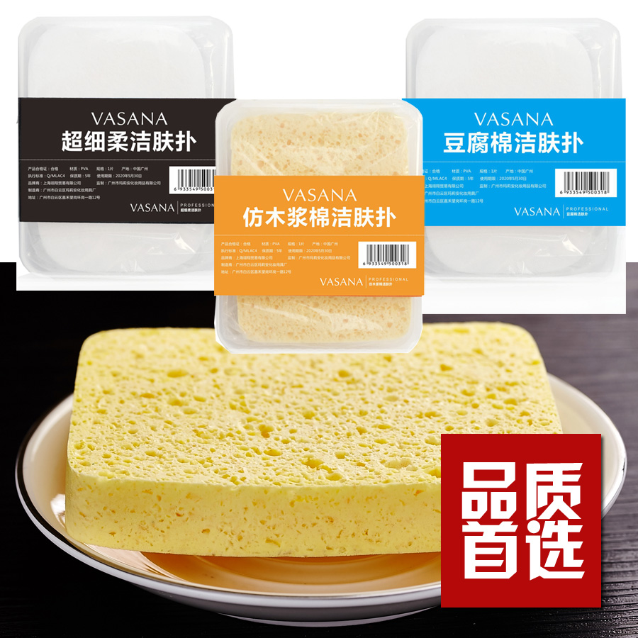 VASANA2送1 加厚超细柔洁肤洁面扑木浆棉洗脸颜化妆海绵粉扑盒装