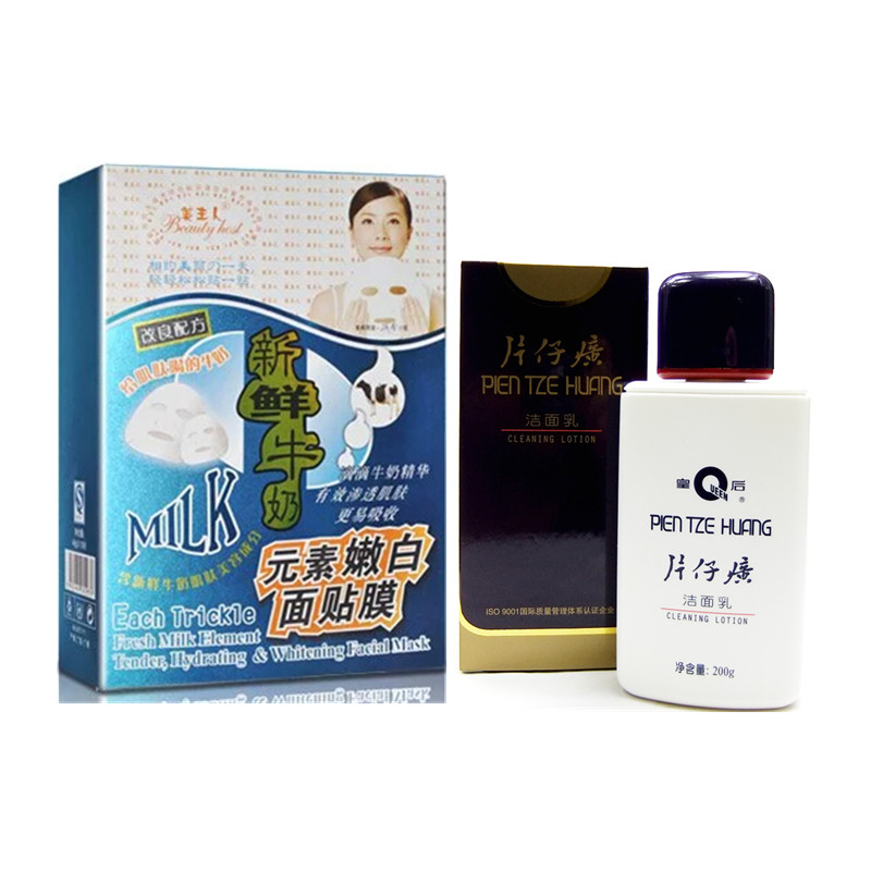美主人新鲜牛奶面膜10片+皇后牌片仔癀洁面乳200g无泡洗面奶
