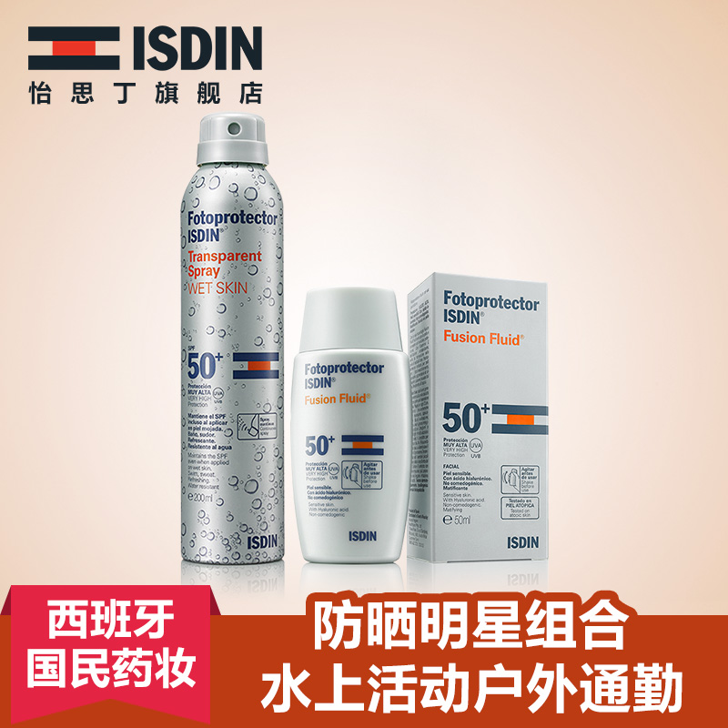 ISDIN怡思丁活力亲水组合套装SPF50湿肤身体喷雾男防晒霜女夏海边