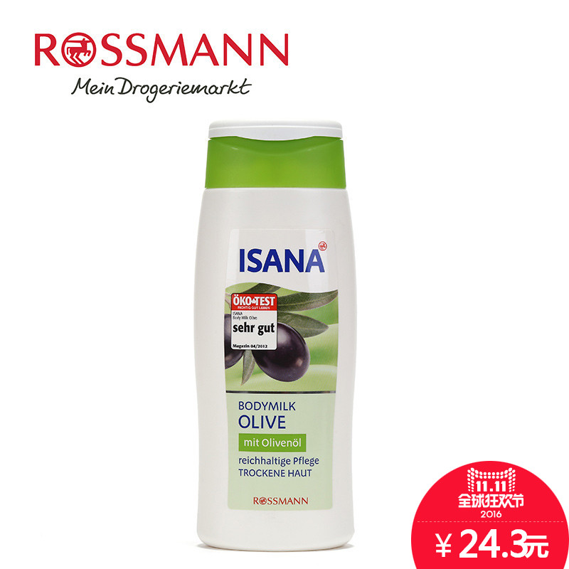 德国进口ISANA橄榄身体乳美白保湿滋润补水全身男女去鸡皮润肤乳