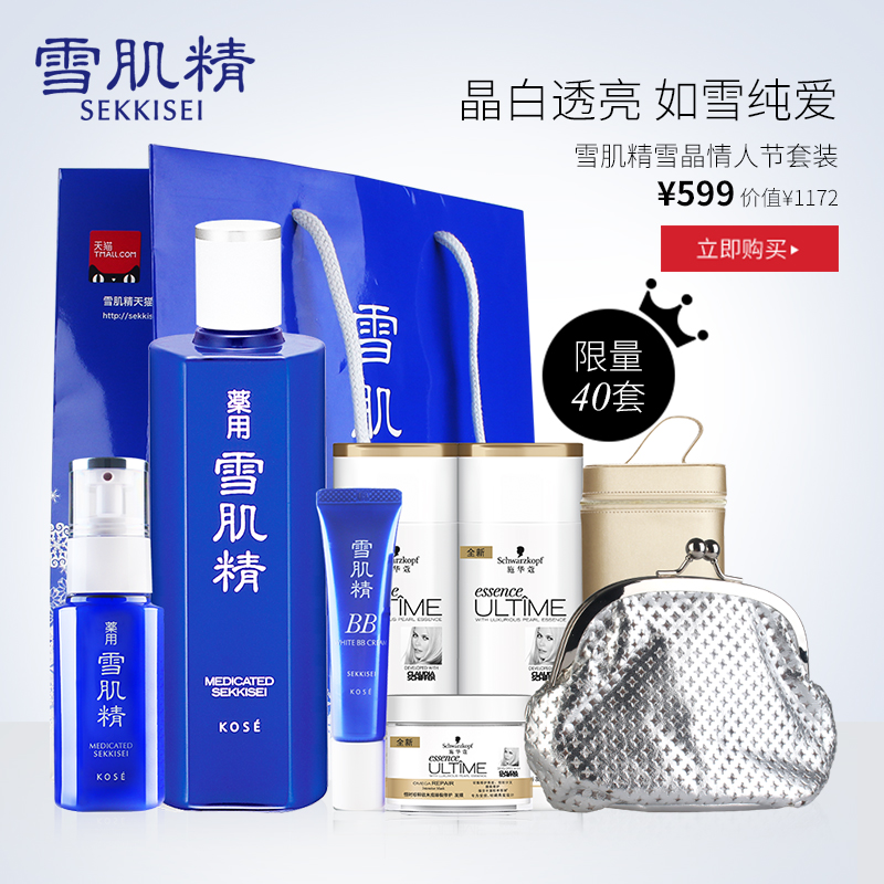 【白色情人节限量】雪肌精雪晶美人套装化妆水乳液BB洗护发膜套装