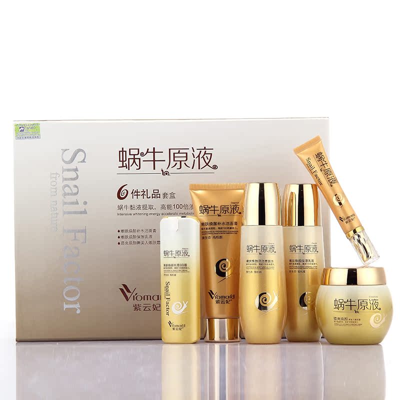 包邮 紫云妃蜗牛原液焕颜六件套嫩白补水护肤品套装礼盒正品