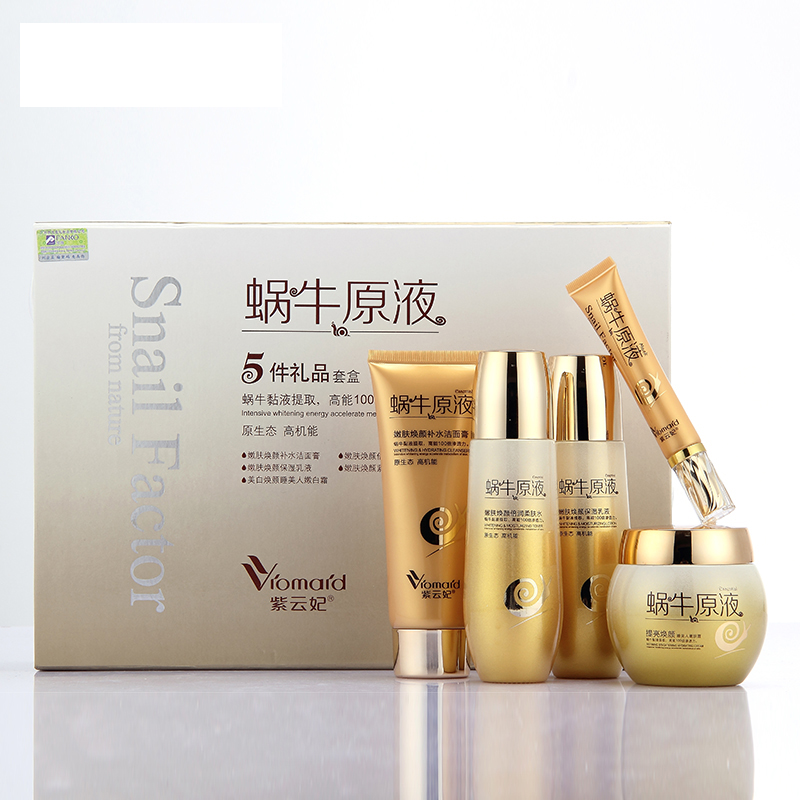 包邮 紫云妃蜗牛原液焕颜五件套嫩白补水修复护肤品礼盒正品