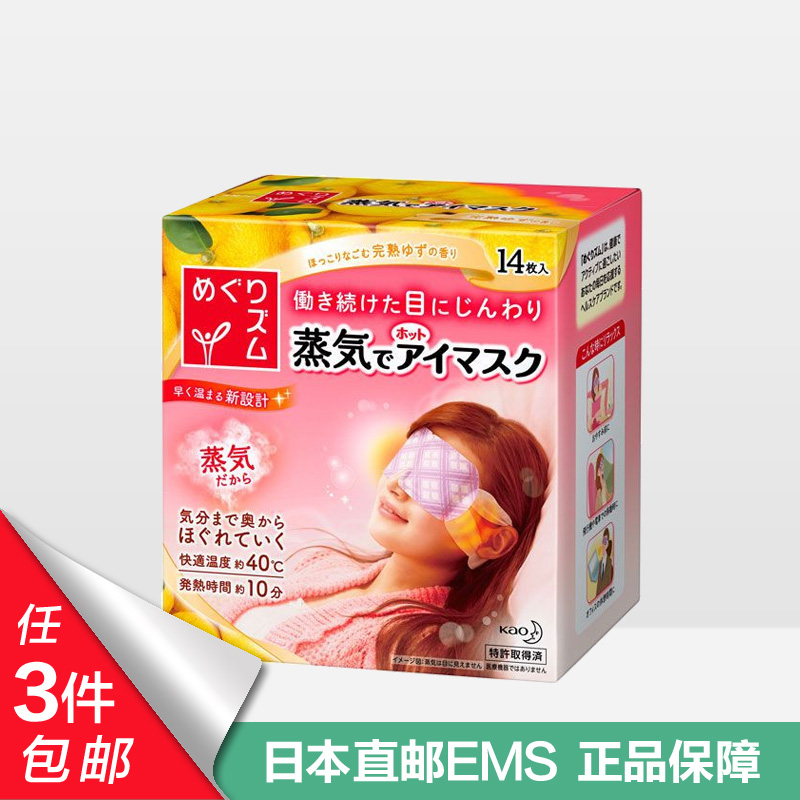 日本花王KAO蒸汽眼罩蒸汽眼膜缓解眼部疲劳去黑眼圈柚子香14片