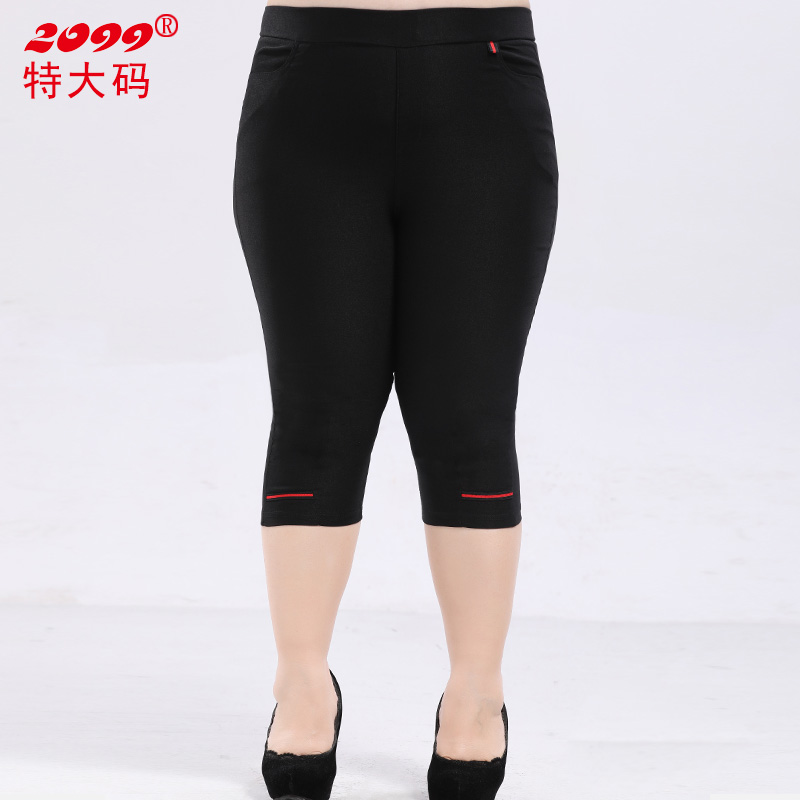 2099特大码女装 2017休闲时尚高腰弹力中裤 加大码百搭修身七分裤