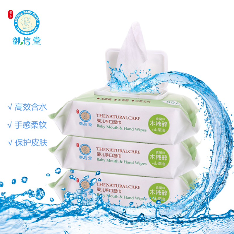 御信堂婴儿手口湿巾宝宝湿巾(3连装)湿纸巾婴儿棉柔巾湿巾80抽