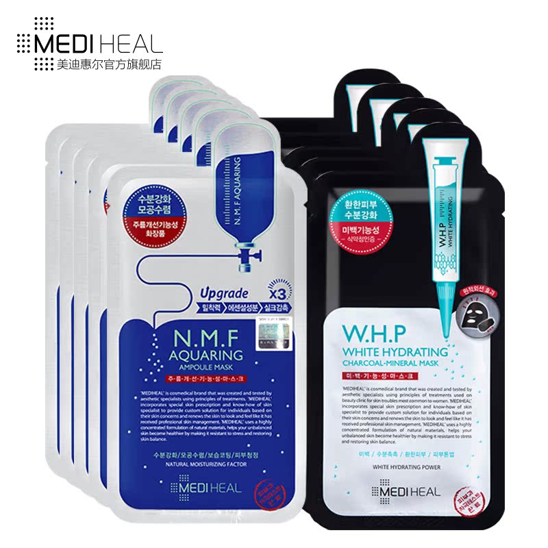 MEDIHEAL/美迪惠尔可莱丝水库水润面膜5片WHP竹炭面膜5片官方正品