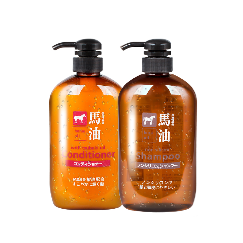 日本熊野油脂无硅油马油洗发水护发素套装沐浴露洗护二合一600ml