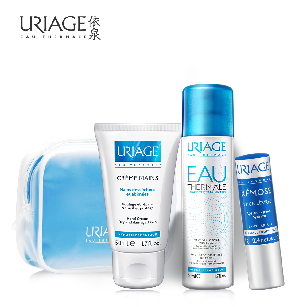 依泉Uriage舒缓保湿喷雾50ml+护手霜50ml+特润滋润唇膏4g旅行套装