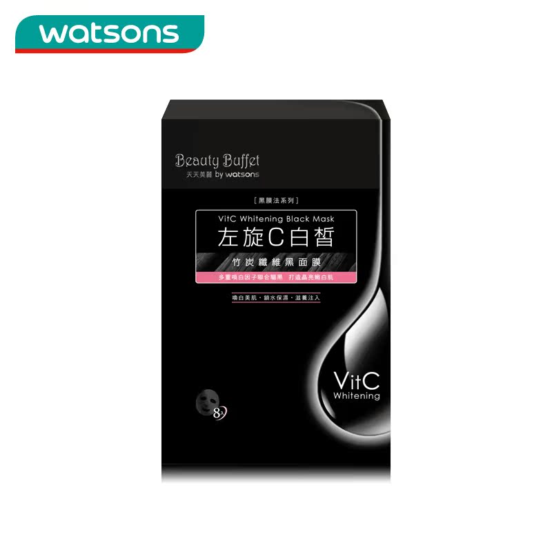 Beauty Buffet天天美丽左旋C美白保湿竹炭黑面膜 8片 台湾屈臣氏