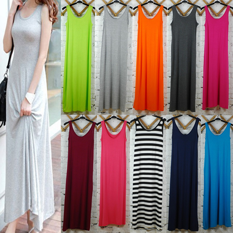 夏秋新款女装连衣裙显瘦莫代尔长裙打底裙吊带背心裙子沙滩裙大码