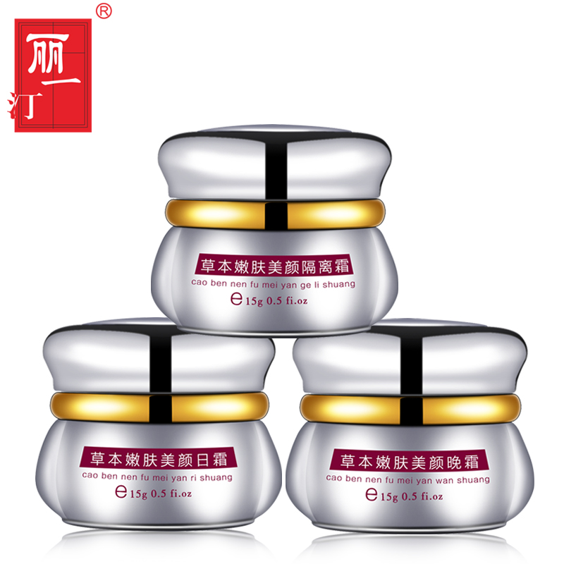 丽一汀白里透红美白祛斑霜草本精华早晚霜五合一套装雪肌红润