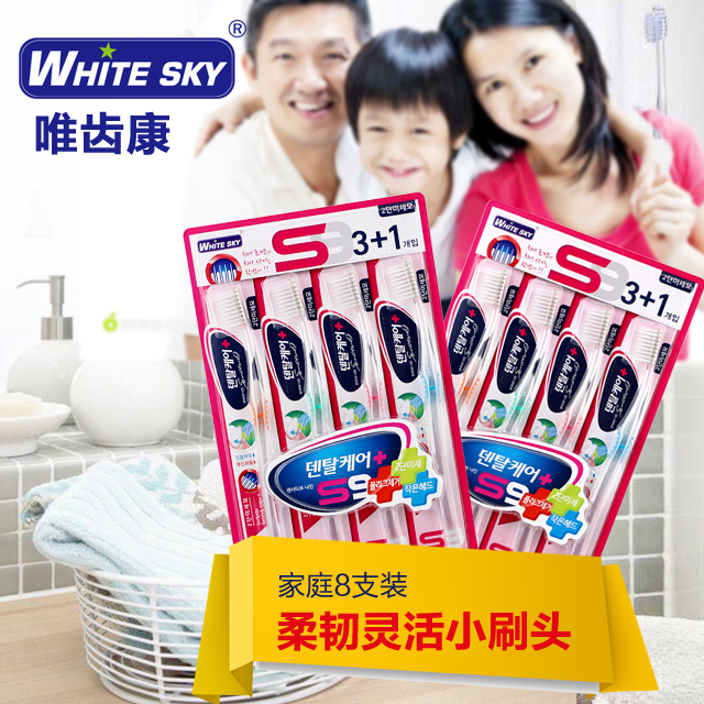 韩国进口唯齿康敏感护理牙刷护牙龈柔韧软毛细毛牙刷全家庭8支装