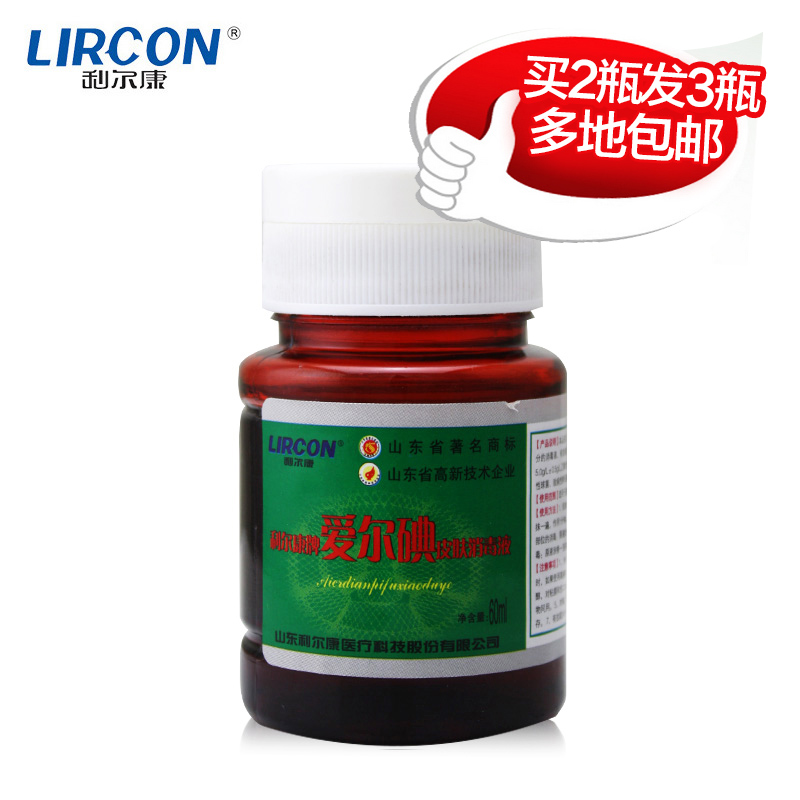 利尔康爱尔碘皮肤消毒液60ml 含酒精碘酒消毒剂护理伤口长效杀菌