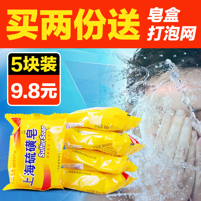 上海硫磺皂洗脸洗澡洗手沐浴面部除螨虫肥皂洗发背部抑痘香皂5盒