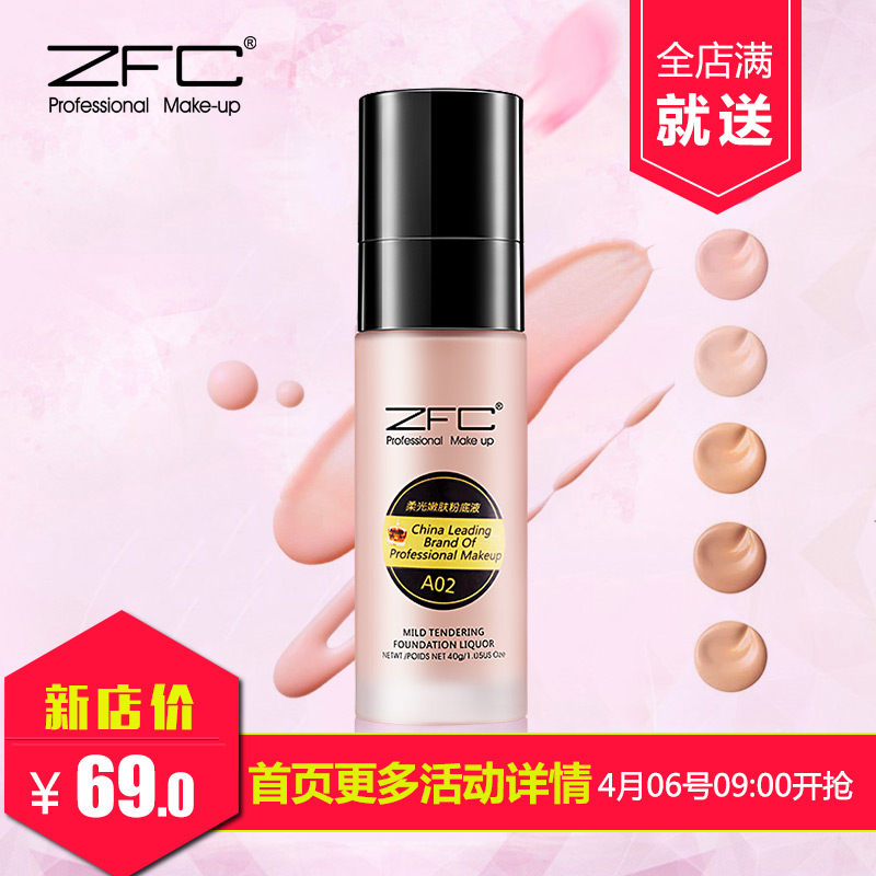 ZFC柔光嫩肤粉底液正品 保湿裸妆遮瑕强 白皙隔离控油粉底霜