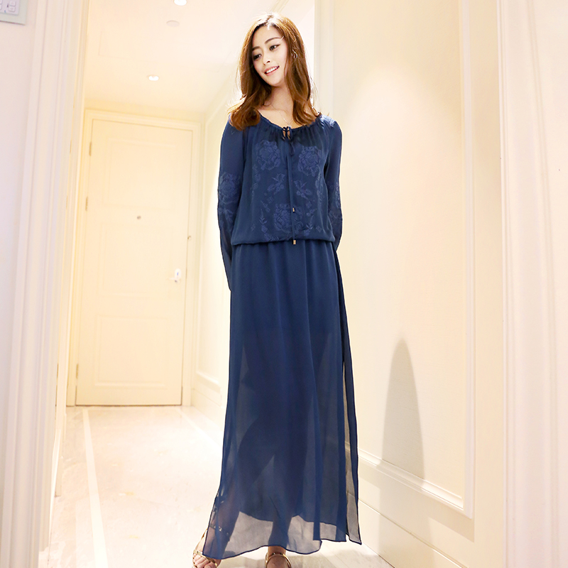 > 2016早春新款女装高端大牌直筒显瘦100%真丝直筒连衣裙WHF2999
