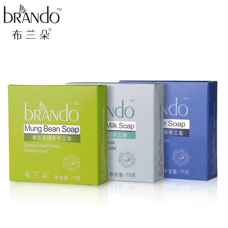【天猫超市】布兰朵绿豆+薰衣草+椰奶手工皂75g*3美白精油洁面皂