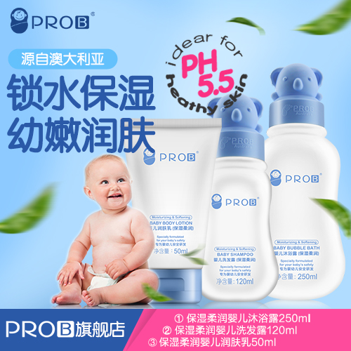 prob 保湿柔润洗浴套组婴儿沐浴露+洗发露+润肤乳(三件套)无泪