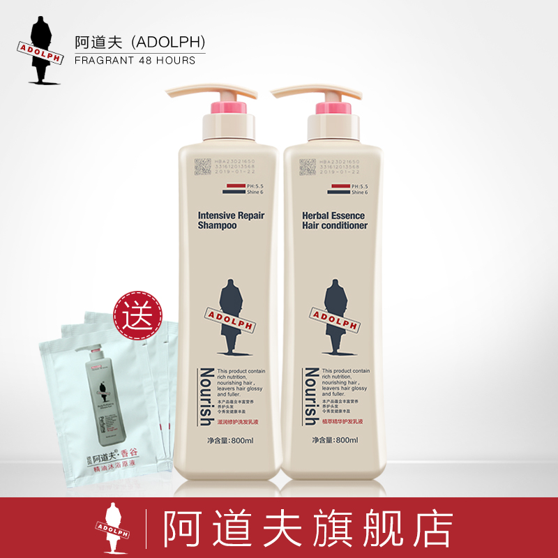 阿道夫洗发水正品套装香水型轻柔丝滑植物精萃护发素黑发洗护套装
