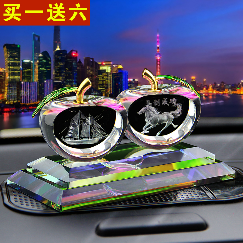 汽车香水晶创意3D内雕苹果座式摆件保平安车内车载装饰品汽车用品