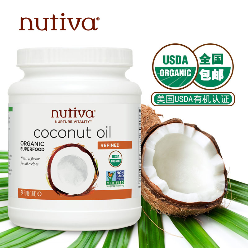 Nutiva 进口有机精炼椰子油1.6L Coconut Oil 生酮食用护肤护发