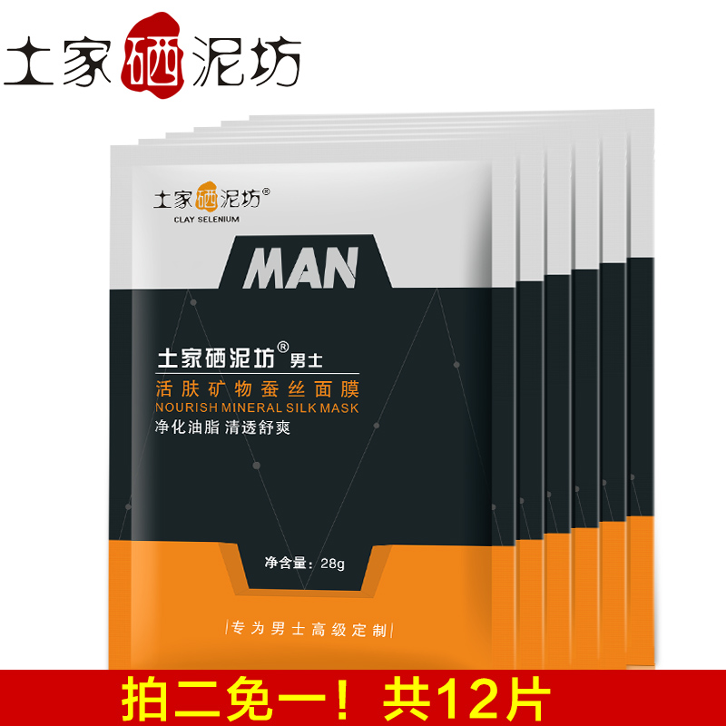 [拍2盒收1盒钱]土家硒泥坊男士蚕丝面膜贴补水保湿控油去黑头痘印