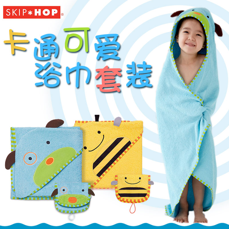 【新春钜惠】Skip Hop 宝宝浴巾纯棉连帽全棉质地柔软卡通图案