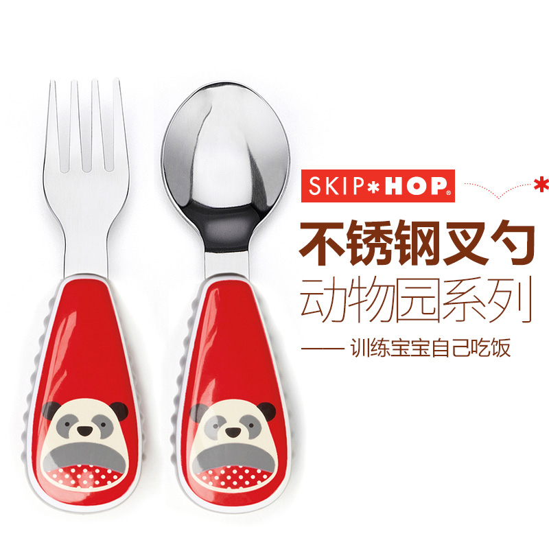 美国SKIP HOP可爱动物系列儿童不锈钢餐叉加餐勺宝宝叉勺套装