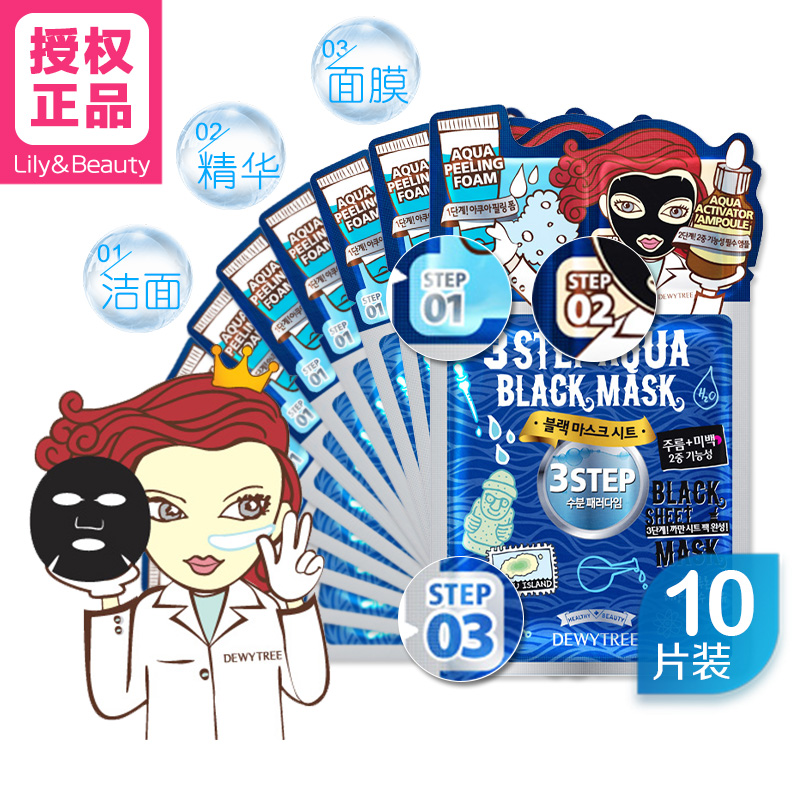 【跑男同款黑面膜】DEWYTREE自然晨露黑炭三部曲面膜跑男同款10片