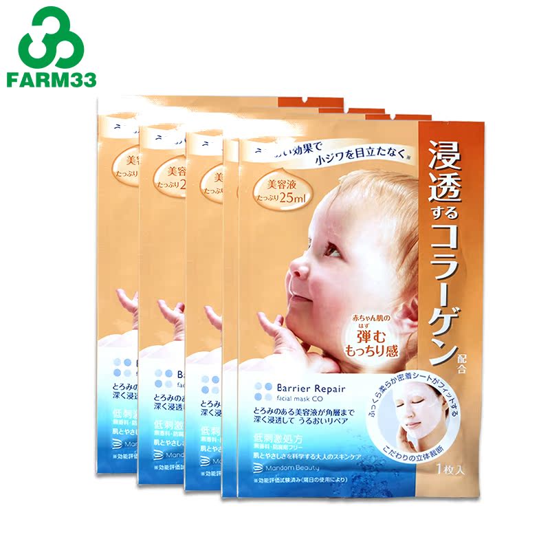 日本Mandom/曼丹 婴儿肌肤弹性胶原蛋白面膜 5片装