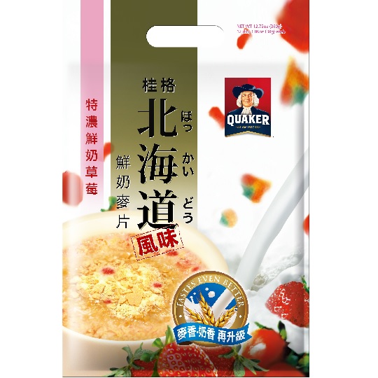 桂格 北海道特浓鲜奶草莓麦片(30gx12包)QUAKER台湾官网直邮进口