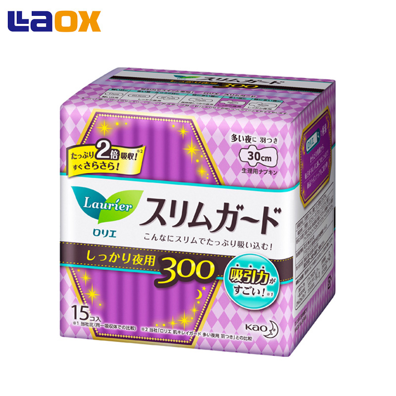 laox日本直邮花王乐而雅超薄1mm瞬吸夜用护翼卫生巾30cm 15枚装