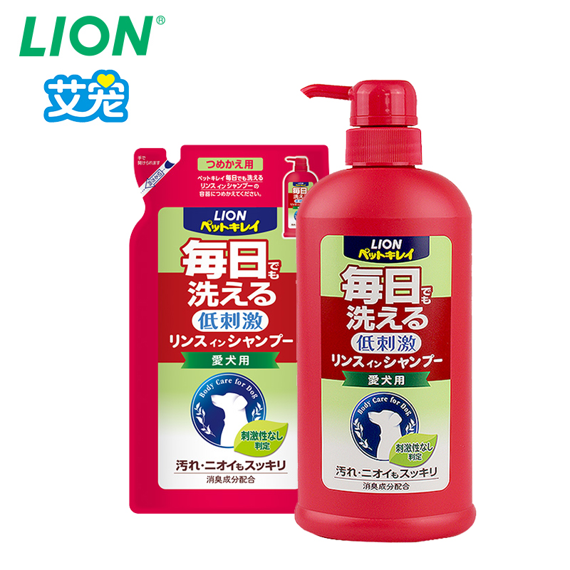 日本进口lion艾宠 狗狗除臭杀菌沐浴露550ML+替换装400ML
