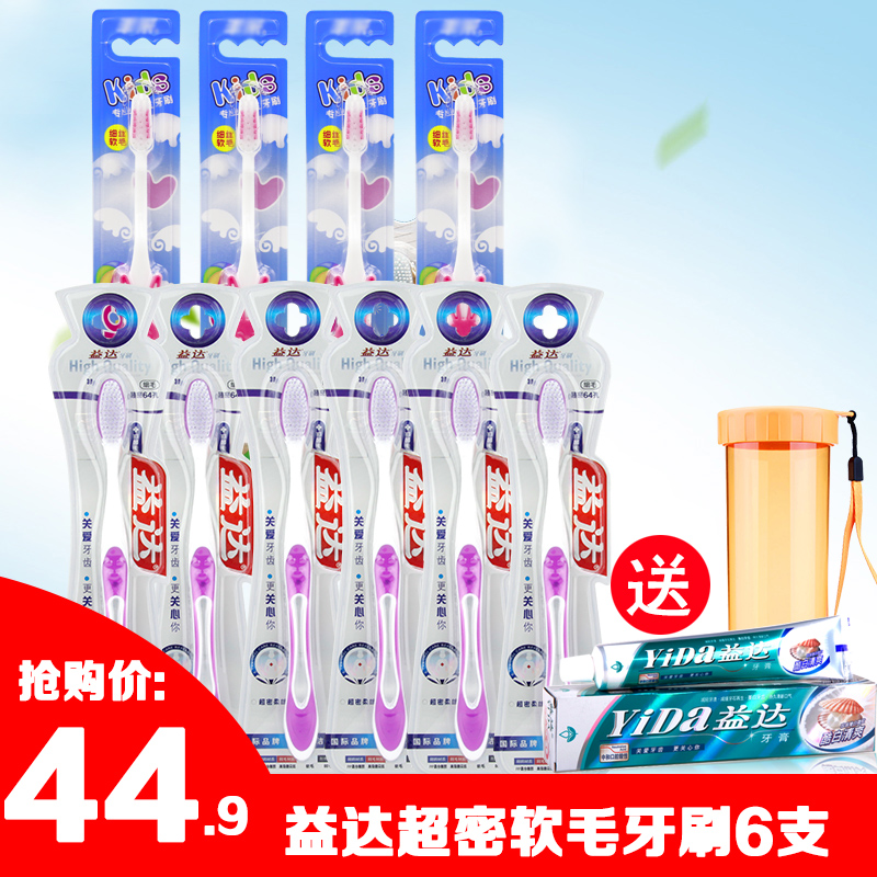 益达成人牙刷软毛超密64孔 超软密细毛刷丝软毛高清洁度6支装