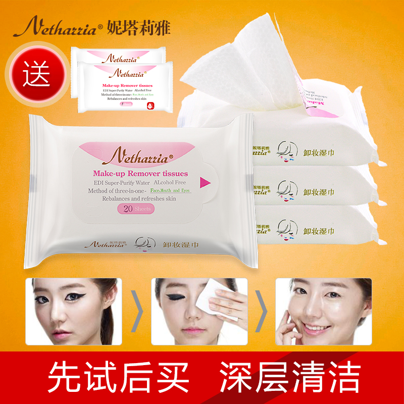 > Netharria/妮塔莉雅卸妆湿巾20片卸妆巾眼唇卸妆水化妆棉卸妆油