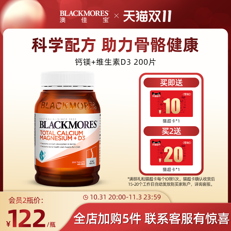 BLACKMORES澳佳宝活性钙镁+维生素D3补钙200片青少年孕妇老人澳洲
