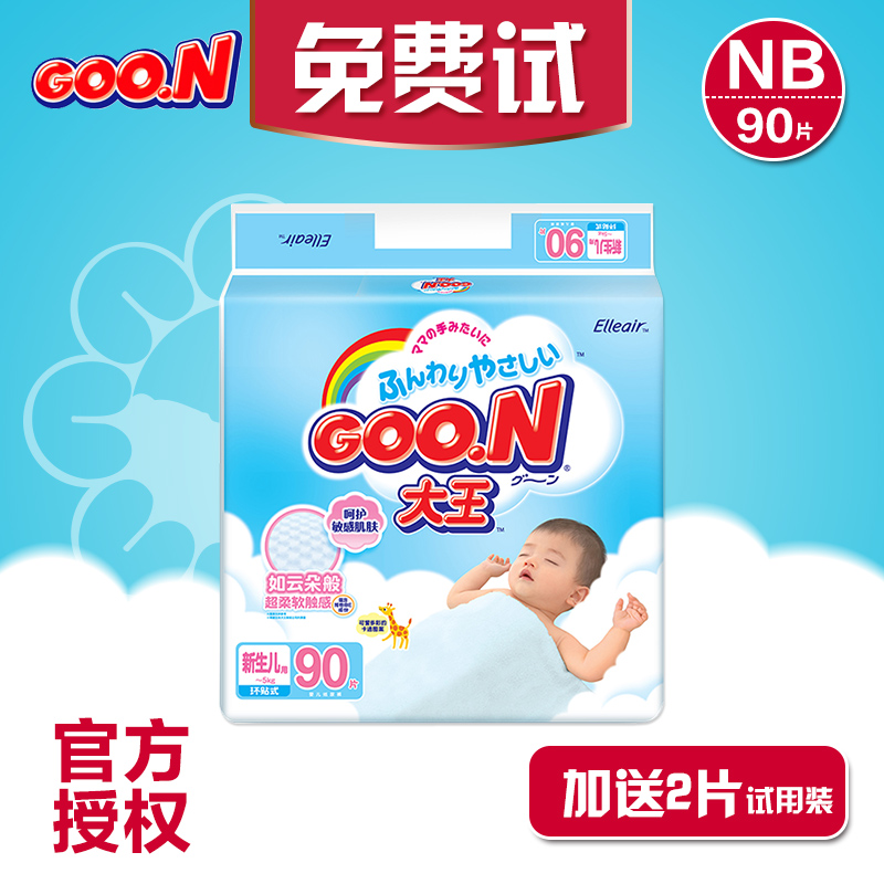 大王纸尿裤婴儿宝宝尿不湿NB90男女通用非拉拉裤纸尿片S/M/L/XL
