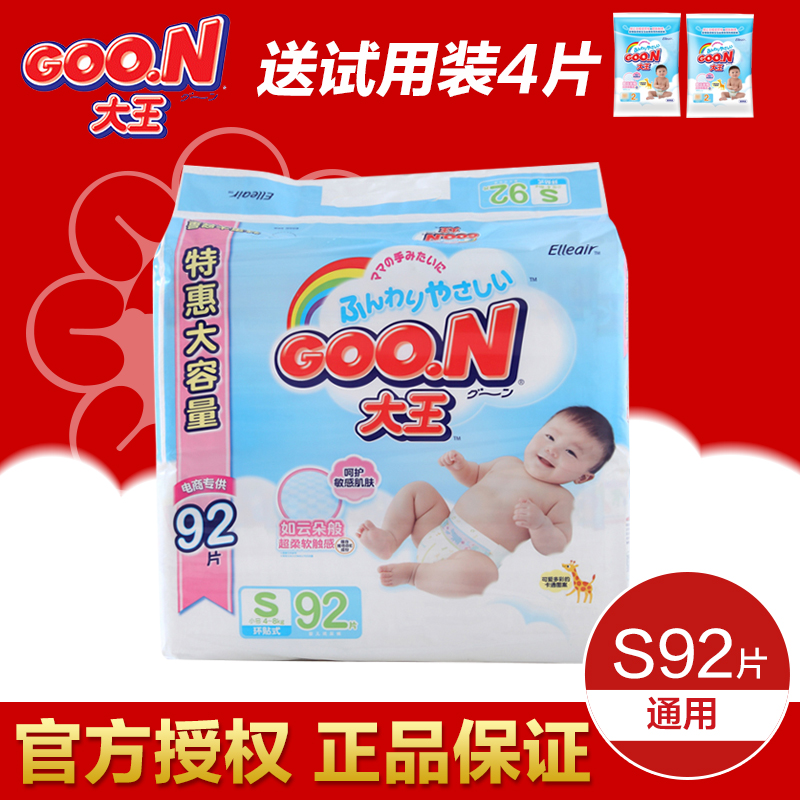 大王纸尿裤婴儿宝宝尿不湿s92男女通用非拉拉裤纸尿片M/L/XL
