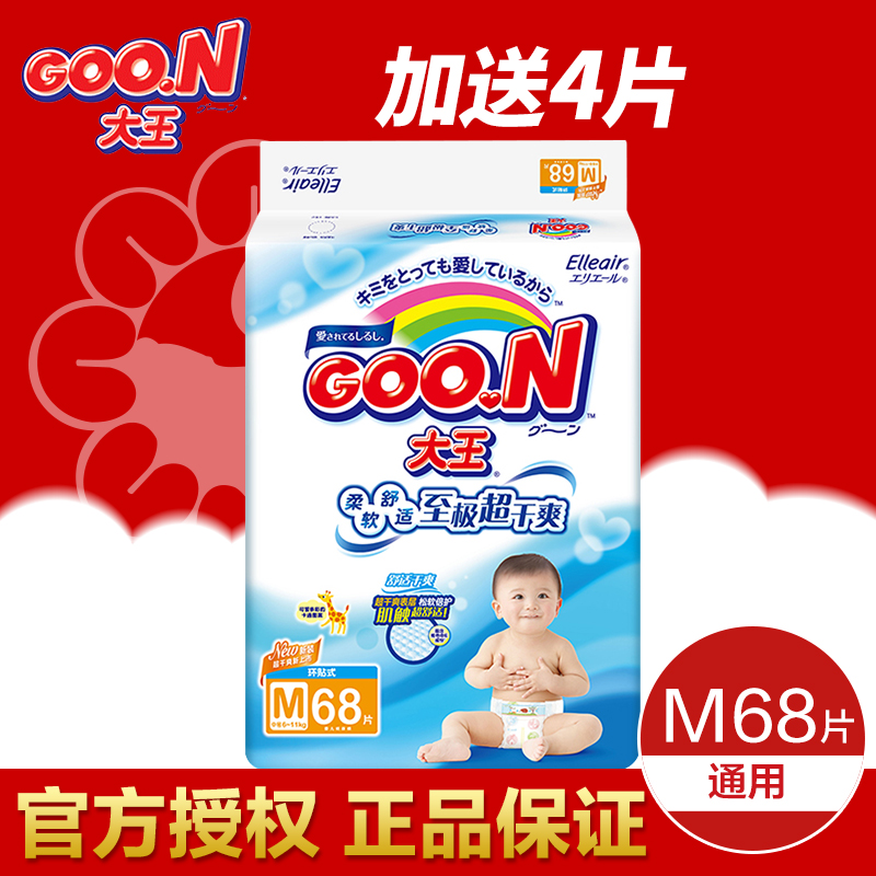 大王纸尿裤婴儿宝宝尿不湿M68男女通用非拉拉裤纸尿片S/NB/L/XL