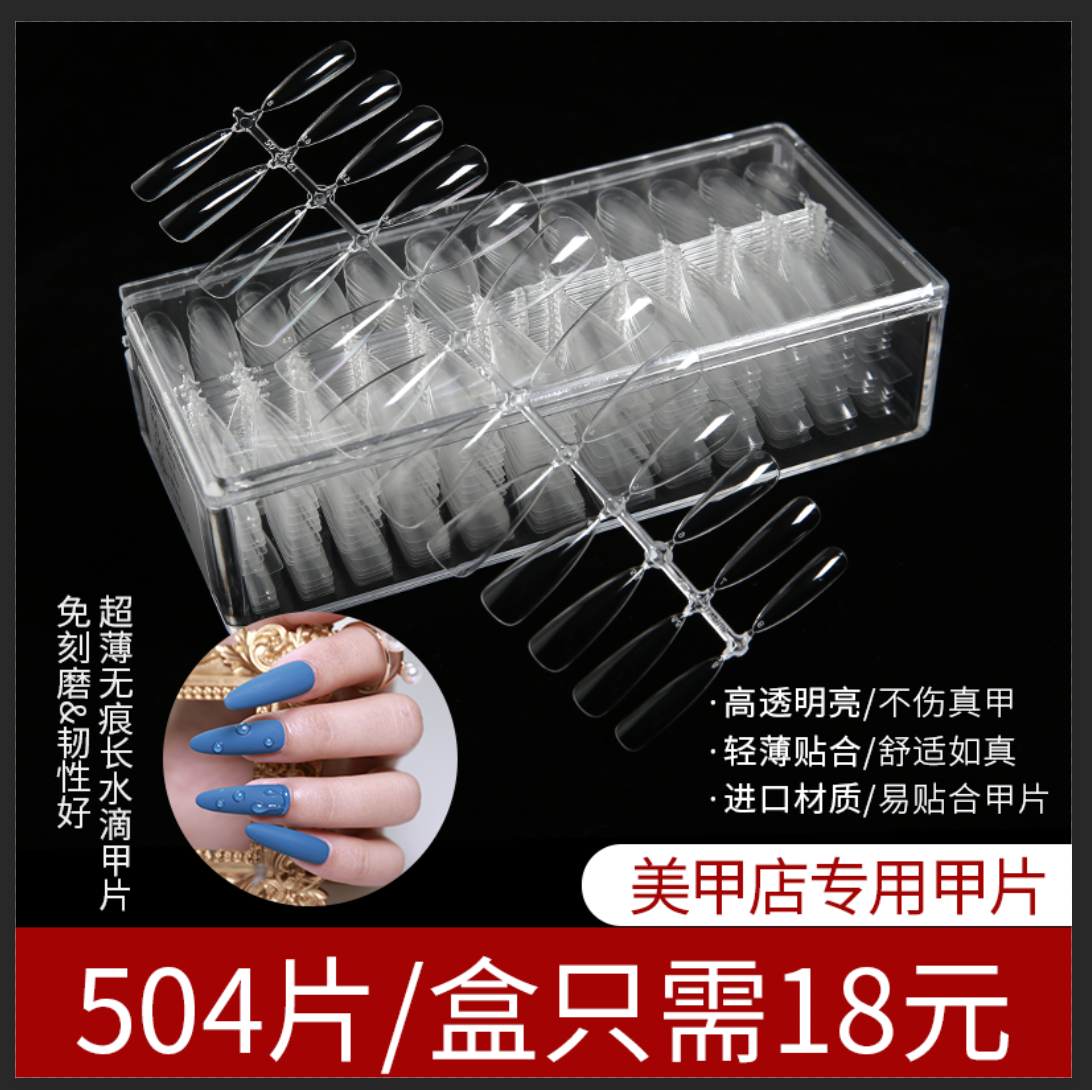 超薄美甲甲片无痕半磨砂梯形杏仁透明全贴半两用假指甲贴片504片