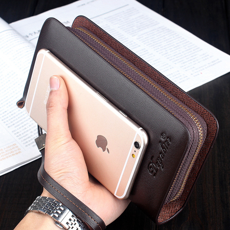 商务手拿钱夹男长款多卡大容量双拉链防盗手机包可放万元现金钱包