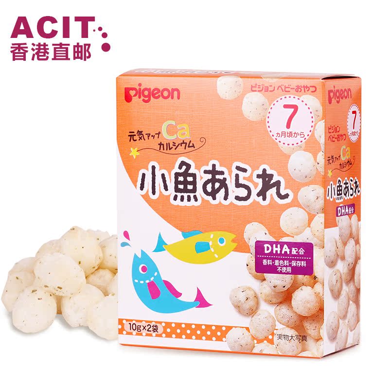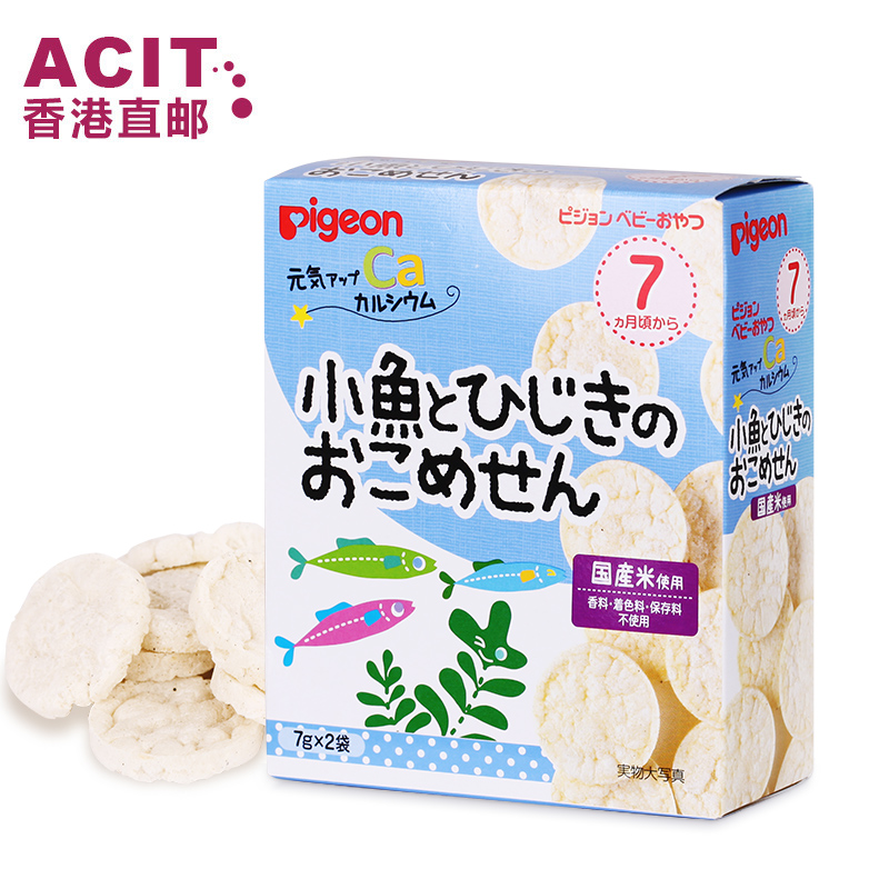 【香港直邮】pigeon日本贝亲 高钙小鱼海藻米饼干7月以上辅食零食