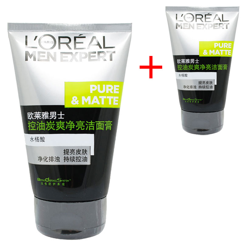 欧莱雅男士清爽控油炭爽去黑头洗面奶深层清洁洁面乳保湿护肤正品