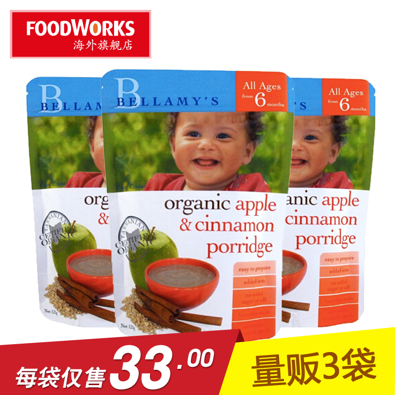 澳洲直达Bellamy'sOrganic贝拉米婴儿辅食麦片粥苹果肉桂味6+3袋