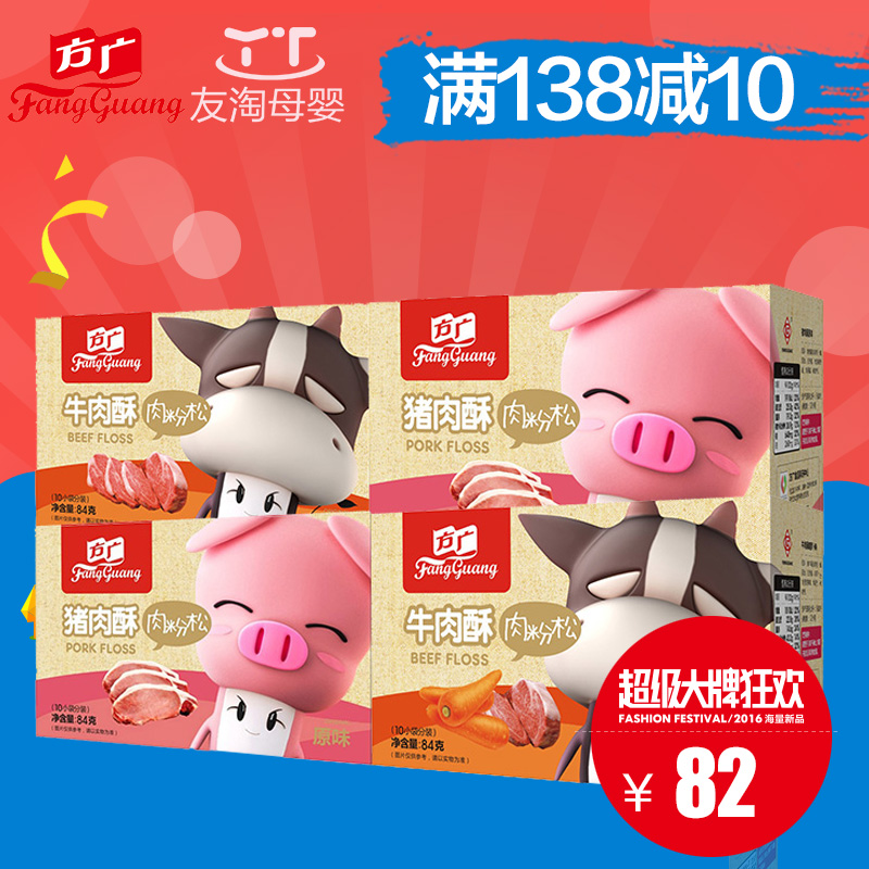 的热门产品方广肉松盒装组合胡萝卜味牛肉*1+原味猪肉*2+原味牛肉*1四盒装