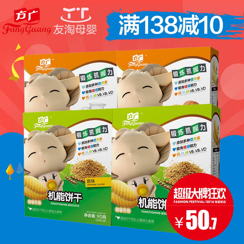 方广婴儿辅食宝宝机能饼干磨牙饼干(花生牛奶*2+原味*2)90g